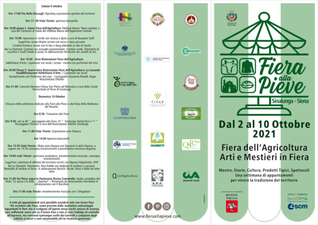Fiera alla Pieve dal 2 al 10 ottobre Appuntamenti su prenotazione Nell’ambito della Fiera alla Pieve, che quest’anno, nella sua nuova edizione, comprende la Fiera dell’Agricoltura e Arti e Mestieri in Fiera, il Comune di Sinalunga, insieme ai ristoratori, ai produttori e alle associazioni del territorio, ha messo a punto un ricco programma di appuntamenti…